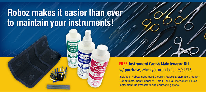 For a limited time, we are giving our customers a chance to receive a free care and maintenance kit with any order over $300. Simply use promo code CLEAN12* when you place an order before 5/31/12, and we will include some of our most popular instrument care items free of charge.